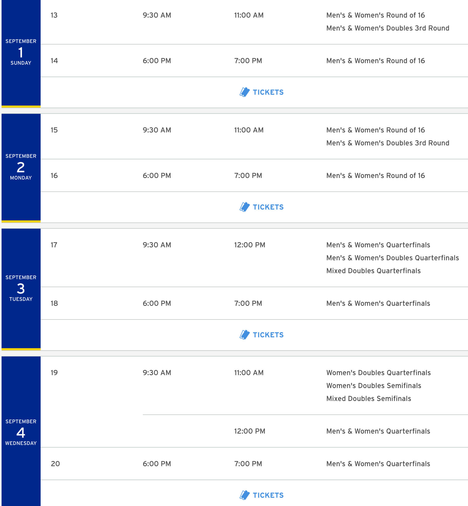 2024 US오픈 테니스 대진표